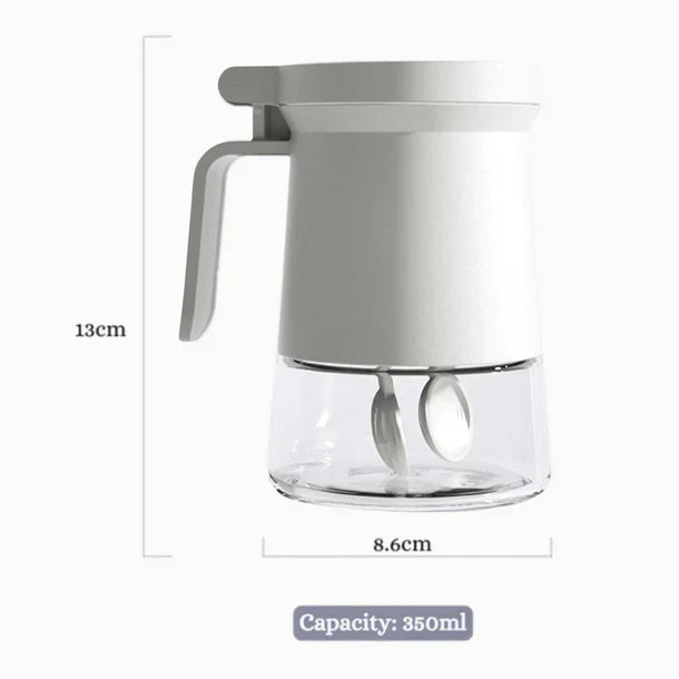 The lid features a stand-up design for hands-free convenience, while the dishwasher-safe construction allows for effortless cleaning. The flat spoon ensures precise seasoning every time.